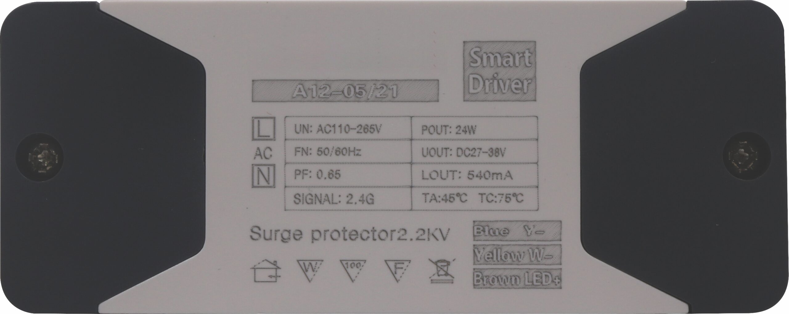 Name : CCT + DIM Smart Driver Power : 5-7 W Input Voltage : AC 110-265V Output Voltage : DC 18-24V Output Current : 270mA CC Precision : ±5% Working TC : 75°C Working Efficiency : >72.3% PF : 0.5 Protocol : SIGmesh + 2.4G Hz Size : 700*29.5*16 mm